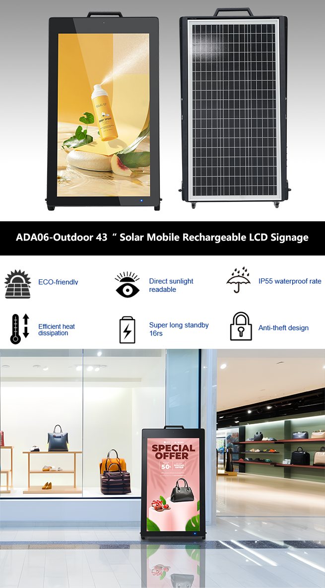 | Solar panel | 100w, adding 3--6hrs running time with |